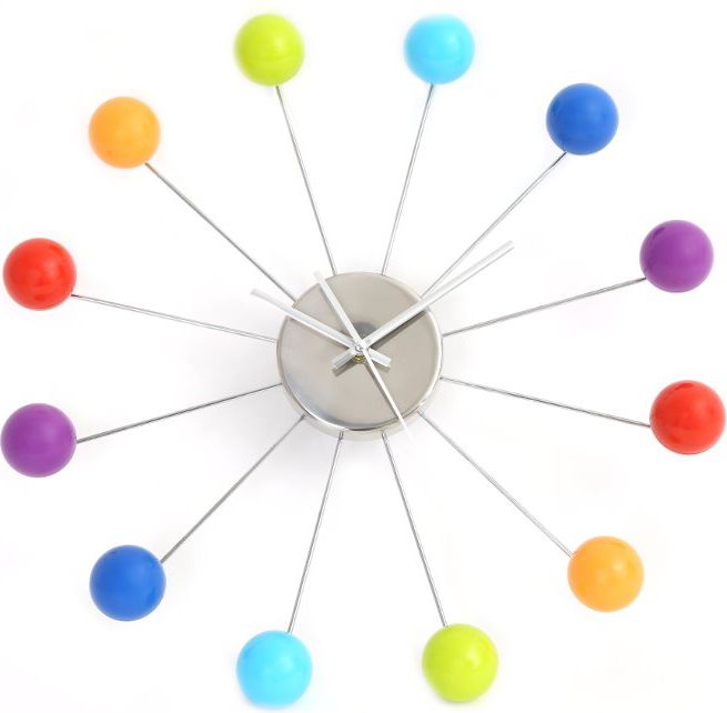 Orë muri nga marka Platinet August. Ajo ka pika me ngjyra që tregojnë orët dhe material prej metali dhe plastike me cilësi të lartë. Kjo orë është e përshtatshme për përdorim të brendshëm, e përkryer për dhomën e fëmijëve. Përmasat: 44 x 44 x 6 cm.