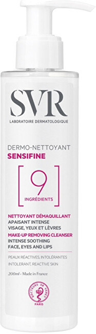 Qumësht pastrues nga brendi SVR, pastron butësisht, heq grimcat e make-up-it dhe qetëson lëkurën reaktive, tepër të ndjeshme dhe të patolerueshme. Nuk përmban aromë dhe është i përshtatshëm për përdoruesit e lenteve të kontaktit. Aplikojeni me majat e gishtave dhe masazhojeni butësisht, më pas fshijeni me një pambuk pa fërkuar. Mund të përdoret me ose pa shpërlarje.