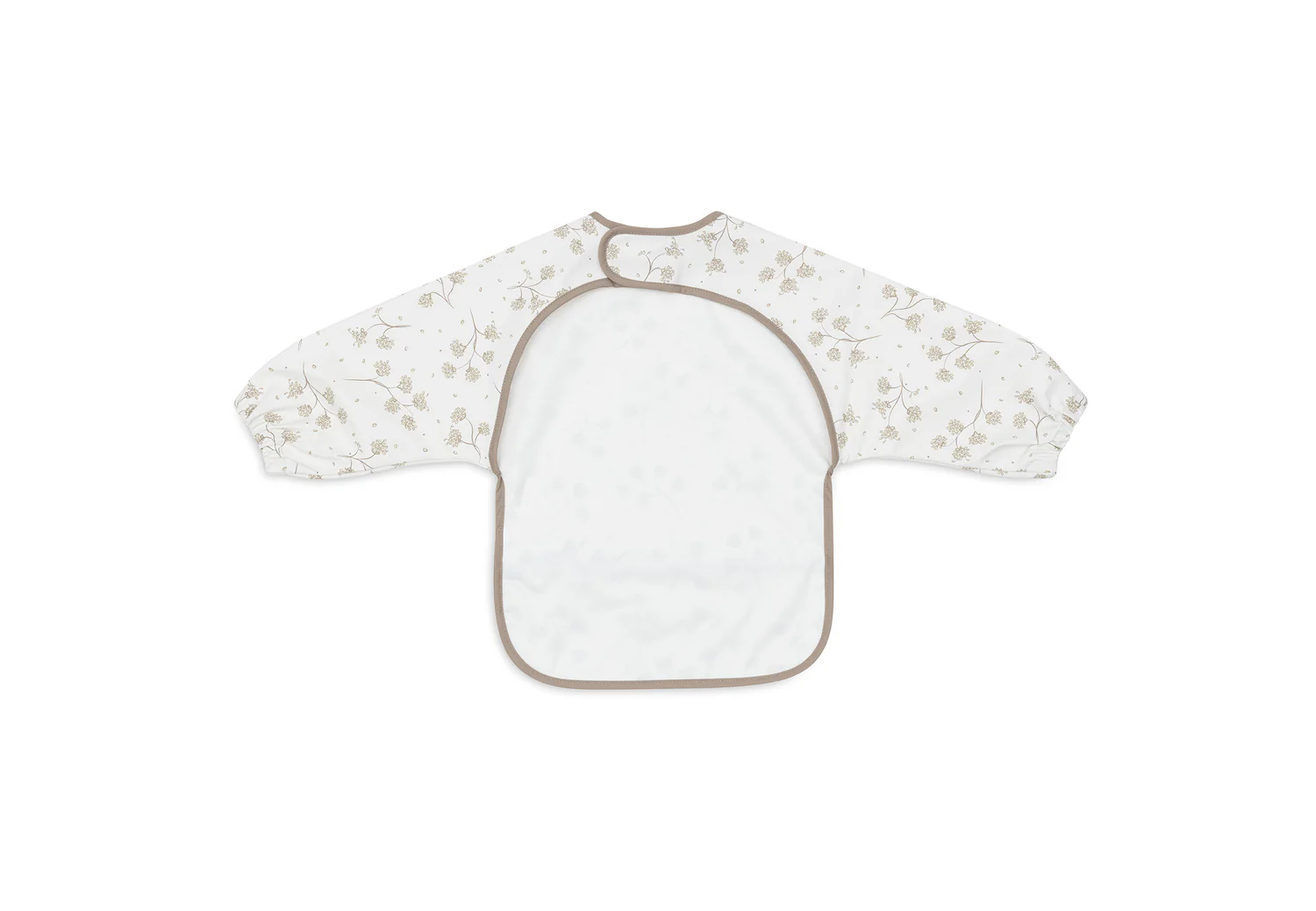 Përparësja kundër ujit me mëngë Sleeves Leafy Dreams mbron rrobat e fëmijës nga njollat dhe uji gjatë ushqyerjes ose lojës, duke qenë e përshtatshme për moshën nga 6 deri në 24 muaj. Materiali i jashtëm i papërshkueshëm nga uji siguron mbrojtje të menjëhershme, ndërsa brenda është i butë 100% pambuk për rehatinë e lëkurës sensitive. Mëngët e gjata mbulojnë krahët plotësisht, duke parandaluar rrjedhjet aksidentale. Mbyllja me kopse të shpejta lejon rregullim të lehtë sipas madhësisë së fëmijës. Dizajni me motive gjethesh shton stil dhe gëzim për çdo moment. Është e lehtë për t'u pastruar me një leckë të lagur dhe tharë menjëherë. Kjo përparë është zgjedhje praktike për prindërit në rutinë të zënë.