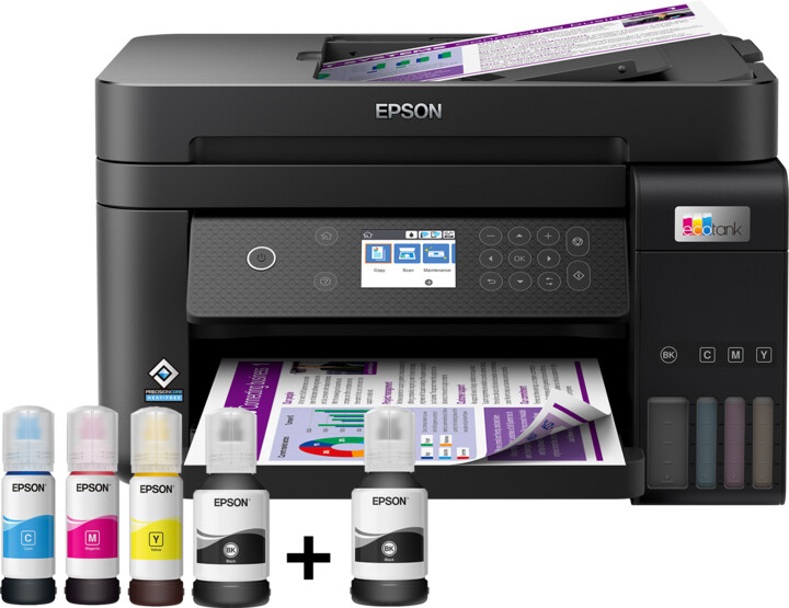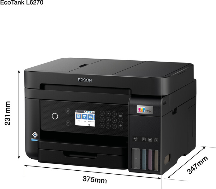 Epson EcoTank L6270 është një printer me shumë funksion inkjet me një sistem rezervuari boje. Rezolucioni i printimit prej 4800 x 1200 dpi, shpejtësia e printimit deri në 33 faqe / min në të zezë dhe të bardhë, 20 faqe në minutë në ngjyrë, 69 sekonda merr printimin e një fotografie 10 x 15 cm. Rezolucioni i skanerit është 1200 x 2400 dpi. Ka një tabaka letre. Përmasat 375 x 347 x 231 mm, pesha 6.7 kg.