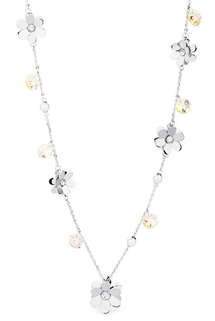 Qafore elegante për femra Brosway, e përpunuar nga çeliku cilësor kirurgjikal me ngjyrë argjendi. Vjen i dekoruar me varëse të shumta në formë lulesh, kristale dhe perla me detaje në ngjyrë ari. Ky aksesor atraktiv ka gjatësi 83 cm dhe peshon afërsisht 30 g.