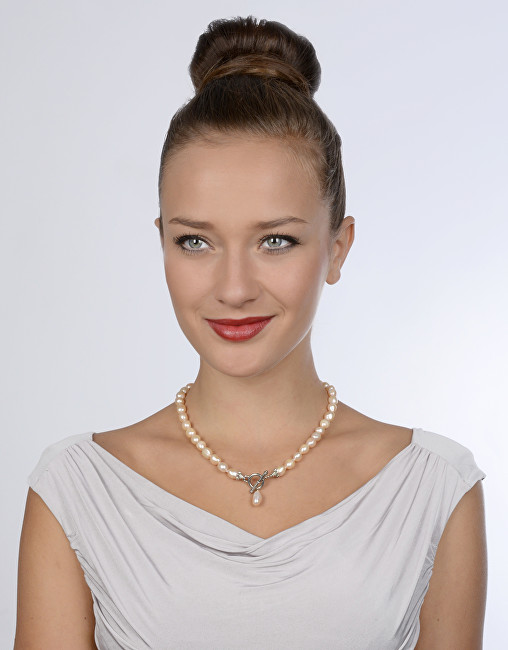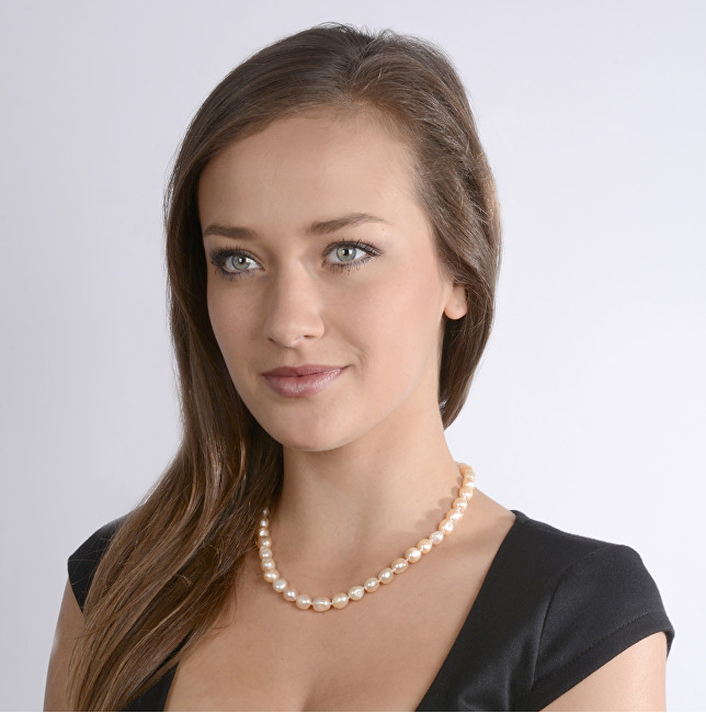 Qafore elegante për femra nga marka e njohur JwL. Është përpunuar nga metali me sipërfaqe me shkëlqim, dekoruar me perla natyrale me ngjyrë rozë dhe mbërthim interesant që bie në sy. Ky aksesor atraktiv vjen me gjatësi 46 cm, perlat kanë gjërësi 1 cm dhe peshon afërsisht 46 g. Për një dukje që nuk kalon pa u vërejtur, vetëm për juve nga JwL.