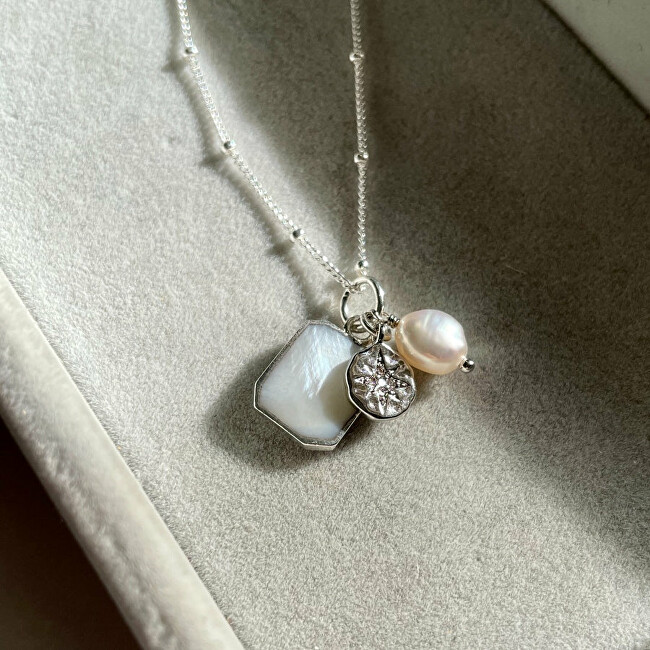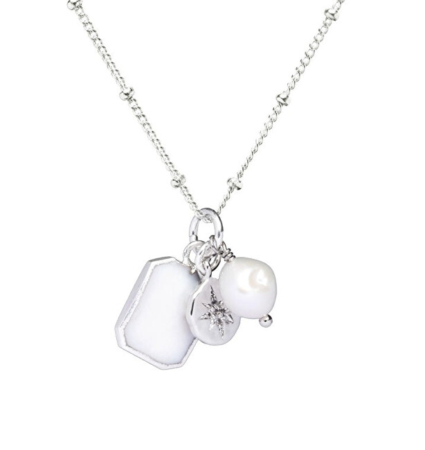 Qaforja moderne nga Decadorn është punuar nga metali bazë. Dekorohet me varëse me perla origjinale të ujërave të ëmbla, një monedhë të vogël dhe një varëse me perla të shkëlqyera. Gjatësia e qafores: 61 cm.