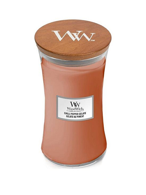 Qiriu aromatik i madh Chilli Pepper Gelato sjell aromën e veçantë të specave të kuq, limonit dhe një kombinimi të ëmbël të akulloreve vanilje me qumësht kokosi. Ky qiri ka kapak tipik prej druri dhe mbush ambientin me aromë të këndshme, ndërsa zëri i butë i kërcitjes së qiririt krijon një atmosferë rehatie dhe ngrohtësie. Qiriu ka majë druri, ku forma e patentuar Pluswick® lejon që dylli të shkrijë deri në 5 herë më shpejt se një qiri i zakonshëm pambuku, duke shpërndarë aromën shpejt dhe në mënyrë të njëtrajtshme. Ky qiri digjet pastër, pa lënë tym, dhe kapaku prej druri mund të përdoret si bazë për qirin gjatë djegies. Ai ka kohë djegieje deri në 110-120 orë dhe dizajn elegant me qelq të fryrë me dorë.