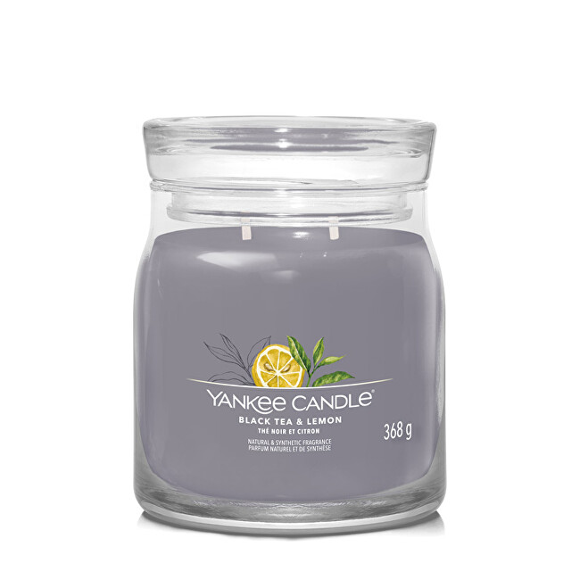 Qiriu aromatik Signature Glass Medium Black Tea & Lemon me peshë 368 gram ofron një aromë të rafinuar të çajit të zi, ëmbëlsuar me vanilje të këndshme dhe zbutur nga nuanca të musk-it. Përfundimisht, aroma plotësohet nga një spirale e freskët e lëkurës së limonit. Ky qiri ka dy fitila që sigurojnë një djegie të qëndrueshme dhe aromë të pasur, i bërë me një përzierje të butë dylli soje dhe përbërësve të aromës më të cilësisë së lartë. Përbërja e aromës përfshin në pjesën e sipërme yuzu, limon dhe piper rozë; në zemër gjen susam të zi, xhenxhefil dhe gjethe lime; ndërsa baza përmban vanilje të ngrohtë, karafil, kokos dhe musk të kremtë. Qiri ka një kohë djegie prej 35 deri në 50 orë, është i pajisur me etiketa të frymëzuara nga ilustrimet e punuara me dorë që i japin një pamje artistike unike, dhe përmban një përzierje të butë me dylli soje që prodhon më pak tym. Kapaku i qirit përdoret edhe si bazë praktike. Dimensionet janë 9.3 cm në gjerësi dhe 11.4 cm në lartësi. Ky qir aromatik krijon një atmosferë të ngrohtë, të freskët dhe shumë elegante në çdo hapësirë.