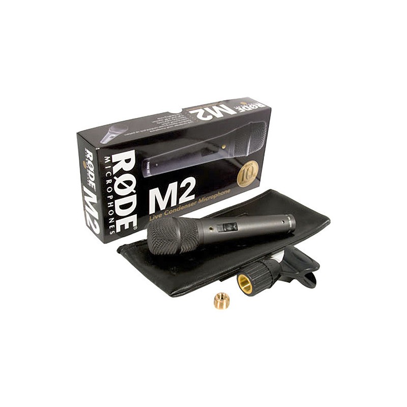 The Rode M2 Handheld Condenser Microphone delivers professional, detailed vocal reproduction in live sound reinforcement, small public address and recording applications. The M2 features a condenser capsule with a supercardioid polar pattern for superior rejection against feedback and off-axis noise.