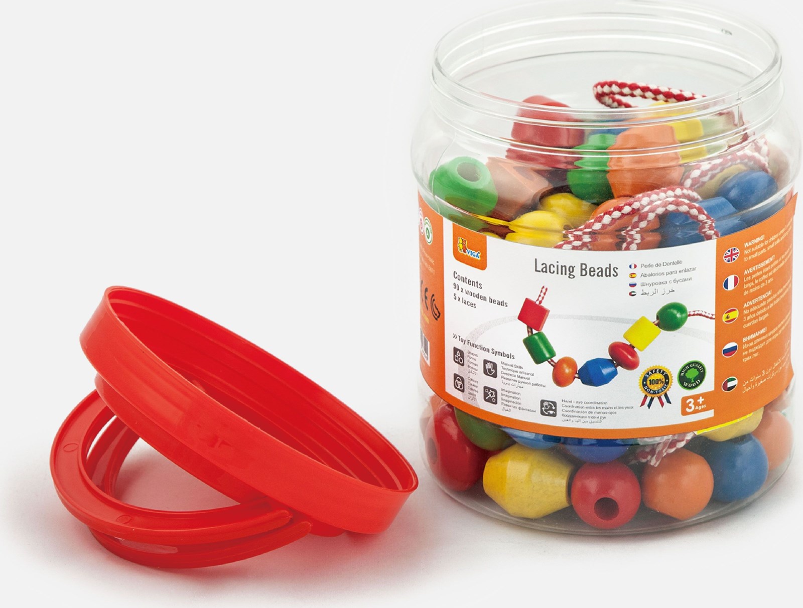 Set i madh shumëngjyrësh me rruaza druri VIGA për futje në penj. Kutia përmban 90 copa rruaza shumëngjyrëshe të formave të ndryshme dhe 5 copa fije për thurjen e tyre. Fëmijët mund të krijojnë dizajne pafund duke drejtuar rruaza druri përgjatë vargut, duke kombinuar forma dhe ngjyra të ndryshme. Ky set me rruaza shumëngjyrëshe do të tërheqë syrin e fëmijës, i cili do të pasohet edhe nga duart e eksploruesit të vogël. Lodra i jep mundësinë fëmijës të krijojë "zinxhirë me rruaza". Fëmija mund të përgatisë rruaza shumëngjyrëshe për nënën e saj ose një byzylyk të bukur për gjyshen. Një lodër edukative prej druri ndikon pozitivisht në zhvillimin e një foshnjeje - zhvillon aftësitë e tij manuale. Gjatë lojës, fëmijët praktikojnë koordinimin sy-dorë dhe perceptimin vizual. Falë kësaj lodre, vogëlushi ynë zhvillon aftësitë e imagjinatës dhe shoqërimit. E gjithë lodra është prej druri ahu dhe e lyer me bojëra jo toksike me ngjyra të gjalla që do të bien në sy dhe do t'ju inkurajojnë të luani duke ju dhënë shumë argëtim. Lodra është e destinuar për fëmijët mbi 3 vjeç.