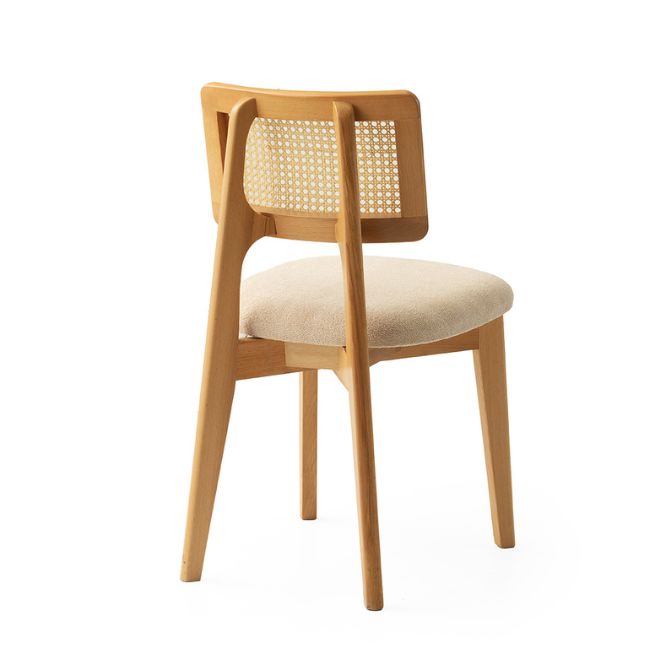 Kjo ulëse nga koleksioni SAG përfaqëson ngrohtësinë e dizajnit natyral dhe finesën e punimit tradicional. Struktura e saj është ndërtuar nga druri natyral me vijë të pastër skandinave, ndërsa pjesa e shpinës është punuar me ratan të ndërlidhur me mjeshtëri. Ulësja e butë bezhë ofron rehati për përdorim të përditshëm, duke e bërë këtë model ideal për kuzhina, dhoma ngrënieje, kafene apo ambiente me frymë boho. Minimaliste, praktike dhe e frymëzuar nga natyra – kjo karrige i shton ambientit dritë, karakter dhe komoditet.