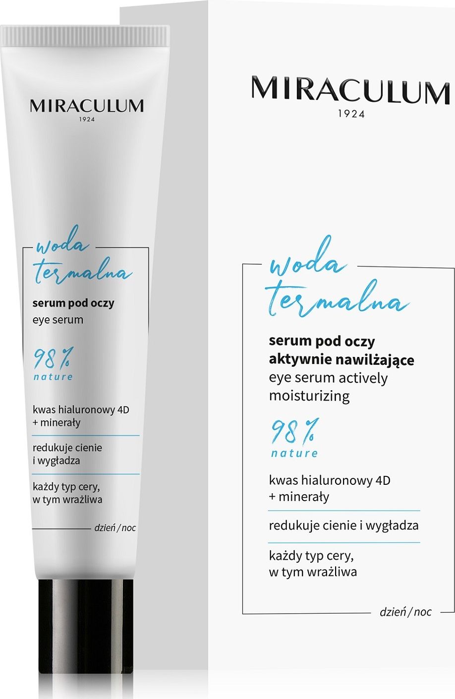 Serumi Miraculum Woda Termalna për zonën rreth syve ofron hidratim të thellë dhe kujdes të avancuar për lëkurën e ndjeshme. Formula është e pasuruar me ujë termal dhe përbërës aktivë që zbutin, freskojnë dhe ndihmojnë në reduktimin e fryrjeve dhe rrathëve të zinj. Tekstura e lehtë absorbohet shpejt pa lënë ndjesi të yndyrshme. Ideal për përdorim të përditshëm në mëngjes dhe në mbrëmje. I përshtatshëm për të gjitha llojet e lëkurës, përfshirë edhe ato të ndjeshme.
