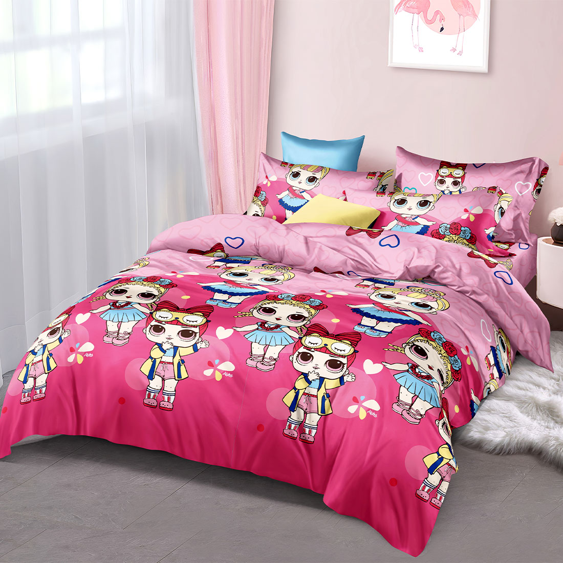 Seti i çarçafëve LOL është ideal për fëmijë. Me përmasa 140x220cm, seti përfshin një çarçaf, një këllëf jorganit dhe një këllëf jastëku, të gjitha të dizajnuara me ngjyra të gjalla dhe me personazhet e filmit të animuar LOL.
