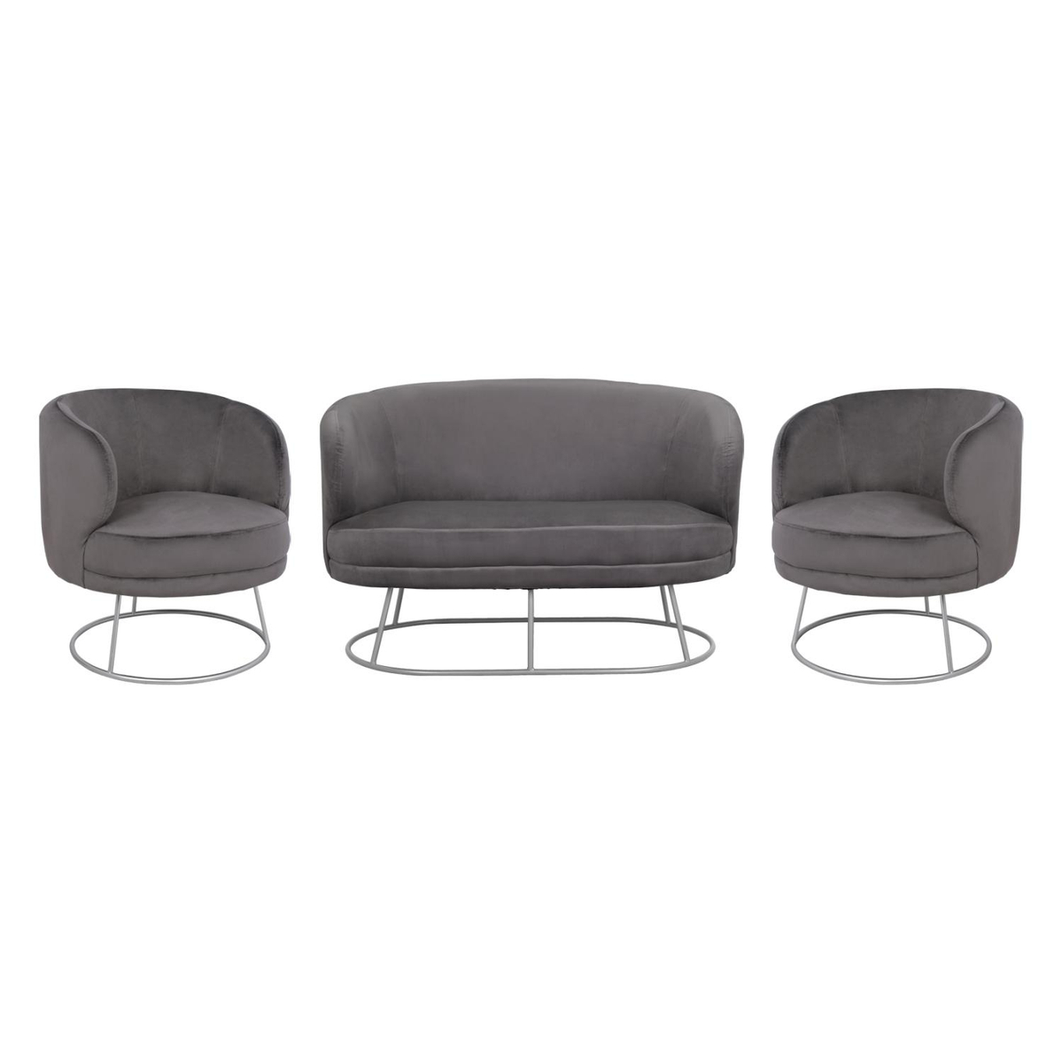 Set dhomë ndenjeje Arien 2+2 velur gri (HM11051.01), gri/ argjendtë
