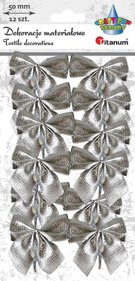 Fjongo të gatshme të bëra prej pëlhure. Për lehtësi, secila prej fjongove është e pajisur me një tel që e bën më të lehtë lidhjen e saj me objektin. E përkryer për të dekoruar pemët e Krishtlindjeve, degëza, kurora, shandanë, dhurata. Gjerësia: 50 mm. 12 copë.