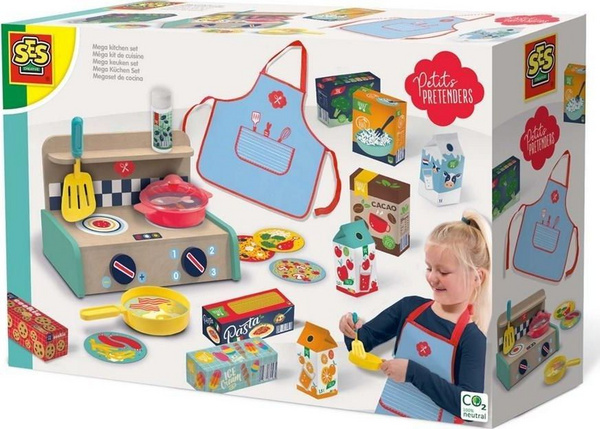 Ky set kuzhine prej druri nga linja Petits nga SES përfshin gjithçka që ju nevojitet për të ndihmuar në shtëpi në kuzhinë ose për të hapur restorantin tuaj. Vendose përparësen e shefit të kuzhinës, përgatitni pjatat më të shijshme në dy tigane, zgjidhni nga 9 përbërësit dhe produktet më të shijshme dhe gatuani menunë tuaj me 3 pjata. Cila është pjata juaj e preferuar? Argëtim për të luajtur me miqtë.