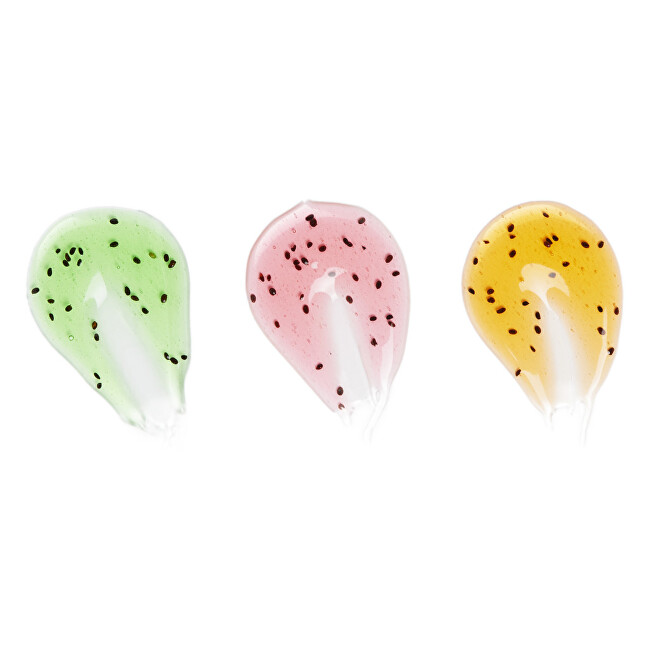 Seti X Jake Jamie Fruity Mask nga Revolution përfshin: maskë për fytyrën me shalqi 50 ml, maskë për fytyrën me kivi 50 ml dhe maskë për fytyrën me papaja 50 ml.