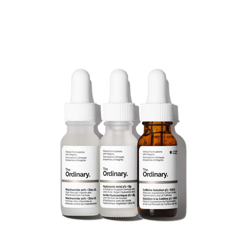 The Ordinary The Most Loved Set përfshin 3 nga serumet më të shitura dhe më të dashura nga kjo markë, që synojnë problemet më të zakonshme të lëkurës: dehidratimi, rrathët e zinj, qeskat poshtë syve, tekstura jo e rregullt, poret e zmadhuara dhe lëkura me yndyrë.