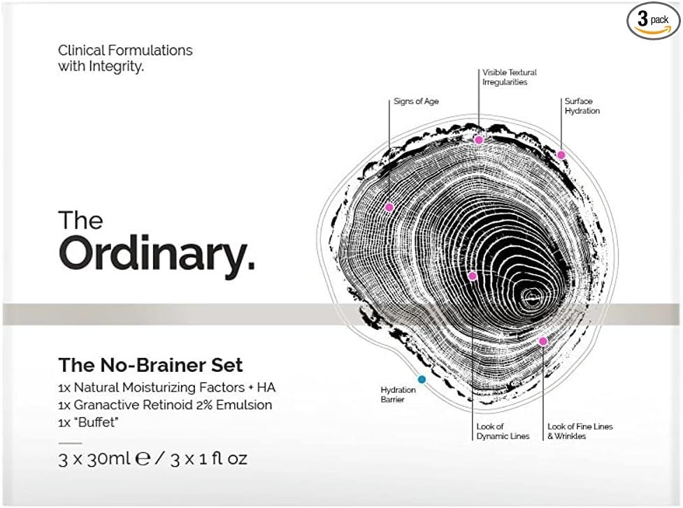The No-Brainer Set është një ndër setet më të fuqishme të The Ordinary, i krijuar për të ofruar një rutinë të plotë anti-aging dhe hidratimi, me 3 nga produktet më të pasura në përbërës aktivë. Ideal për përdorues të përhershëm ose ata që kërkojnë të përmirësojnë dukshëm pamjen e lëkurës.