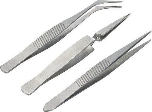 Set me tre pinceta për modelizim, prej metali, të përshtatshme për fëmijë nga 8 vjeç e lart. Ideale për punë precize në modele.