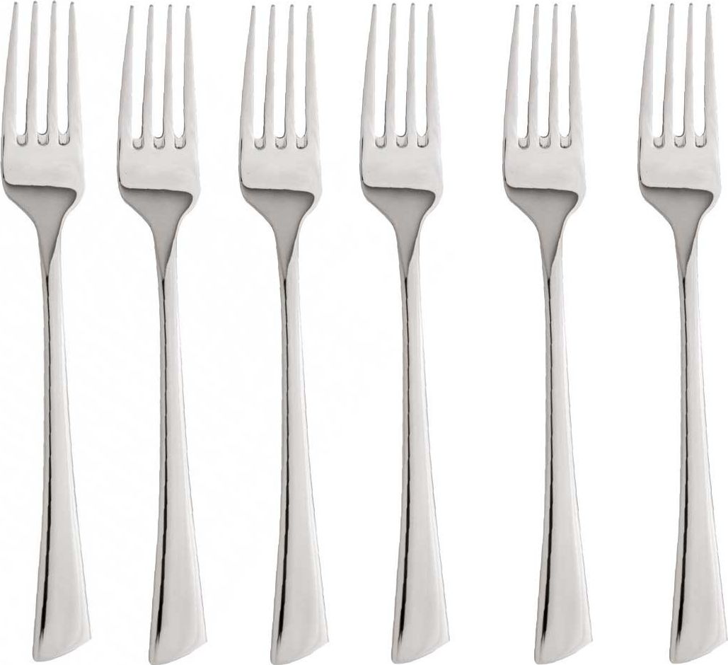 Pirun i lëmuar me shkëlqim të lartë. Seti mund të lahet në enëlarëse. Gjatësia e pirunit është 19.5 cm. Seti përfshin 6 copë dhe janë të paketuar në një flluskë.