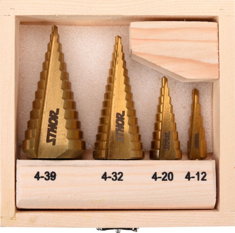 Seti i shpimit me shkallë STHOR 22617 është ideal për shpim preciz në çelik inox, çelik të petëzuar në të ftohtë, metale jo-ferrozë dhe plastikë. I prodhuar nga çelik HSS me shpejtësi të lartë me një shtresë nitriti titaniumi për qëndrueshmëri dhe rezistencë ndaj nxehtësisë. I projektuar për vrima të pastra, pa gërvishtje dhe vetëqendrim në sipërfaqe të rrëshqitshme dhe të rrumbullakosura. I shkallëzuar çdo 2 deri në 3 mm për kalime të lëmuara gjatë shpimit. Siguron shpërndarje të shpejtë të nxehtësisë kur punoni me materiale të forta. Ka një dorezë cilindrike për përdorim të sigurt dhe të qëndrueshëm në aplikime të ndryshme metalike.