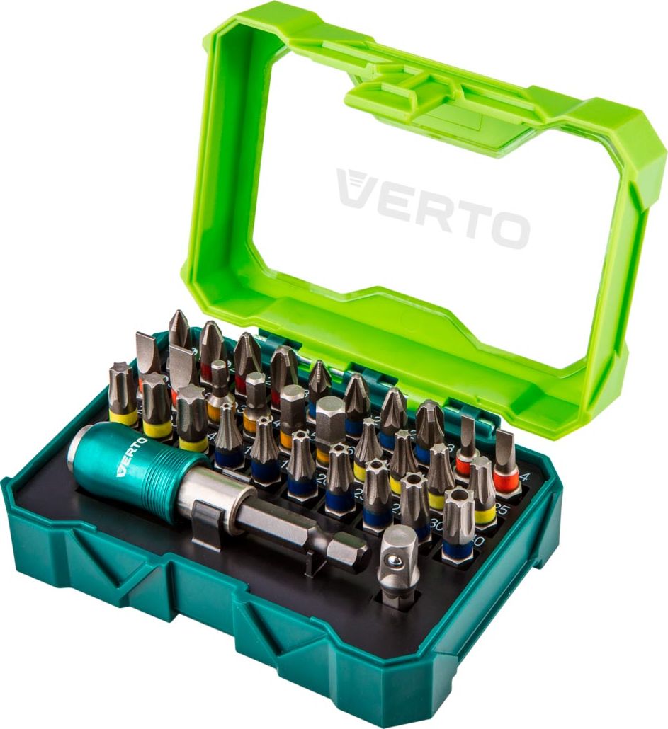 Kompleti i bitave me 32 copë, 25 mm, përfshin 4 bit PH, 4 PZ, 4 SL, 4 HEX, 7 TX dhe 7 TT, së bashku me një mbajtës magnetik dhe një përshtatës prizë (CrV). Është projektuar për të përmbushur nevoja të ndryshme për vidhosje në punë profesionale dhe amatore. Bitat janë bërë nga materiale të qëndrueshme, duke siguruar jetëgjatësi dhe rezistencë ndaj konsumit. Mbajtësi magnetik lehtëson përdorimin dhe ndryshimin e shpejtë të bitave gjatë punës. Kompleti është i përshtatshëm për një gamë të gjerë aplikimesh, nga riparimet shtëpiake deri te projektet e ndërtimit. Përshtatësi i prizës shton fleksibilitet shtesë për përdorime të ndryshme.