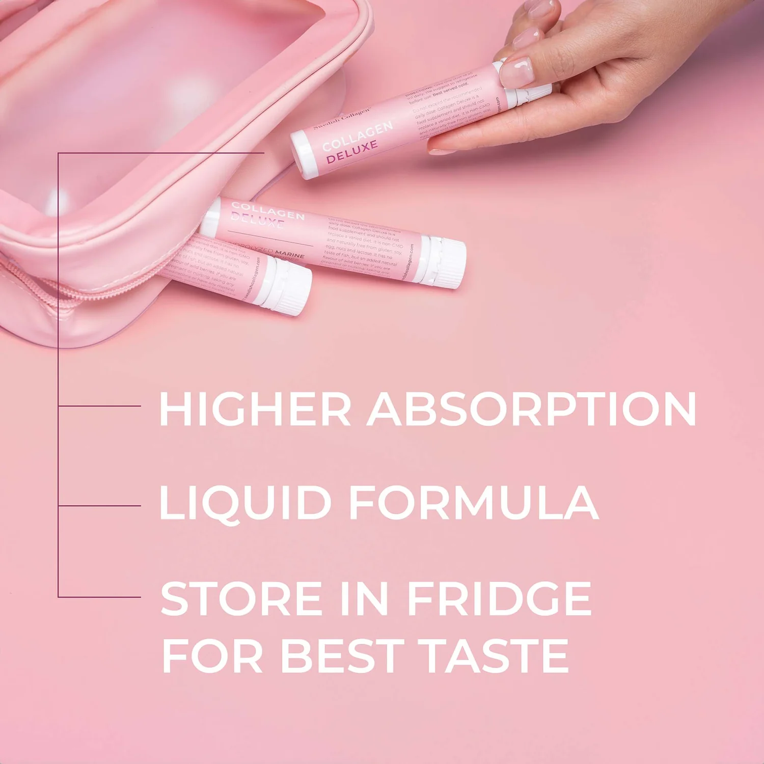 Swedish Collagen Deluxe Shots i prodhuar në Malmo të Suedisë është një nga suplementet më efektive të kolagjenit në treg për të ngadalësuar shenjat e plakjes. Ndikon në: