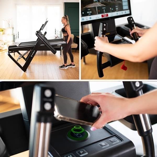 Ajo që e veçon këtë model është paneli multimedial me sistem Android 11, Wi-Fi të integruar dhe aplikacione të parapërzgjedhura si YouTube, Netflix, Spotify, Instagram e shumë të tjera – duke sjellë argëtim të plotë gjatë stërvitjes. Karikimi induktiv për telefonin, altoparlantët e integruar, drita LED që ndryshon ngjyrë sipas gjendjes së pajisjes dhe mbajtësja universale e aksesorëve sigurojnë përdorim të rehatshëm dhe modern. Shiriti mund të paloset lehtësisht dhe falë rrotave të transportit zhvendoset pa mundim. BE5877 HMS është zgjedhja ideale për këdo që kërkon një shirit profesional, argëtues dhe të sigurt – një palestër e vërtetë brenda shtëpisë.