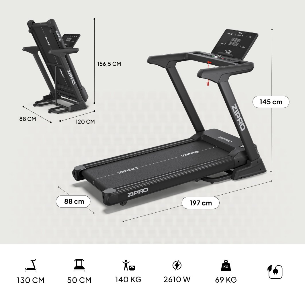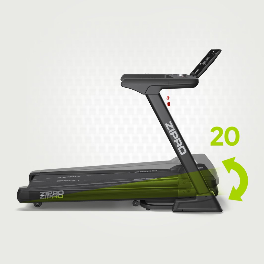 ZIPRO Sigma është një shirit vrapimi i klasës së lartë i krijuar për stërvitje intensive në kushte shtëpie, duke kombinuar performancë profesionale me rehati maksimale. Me motor elektrik 3.5 HP dhe shpejtësi maksimale deri në 20 km/h, ai lejon ecje të lehtë, vrapim të moderuar apo sprint të plotë, duke u përshtatur si me fillestarët ashtu edhe me sportistët me përvojë. Sistemi VibGuard Pro me 4 amortizues dhe 4 jastëkë gome redukton ndjeshëm goditjet në nyje, duke ofruar siguri gjatë çdo hapi – shumë më të lartë sesa në terrene të forta apo pajisje të lira. Funksioni i rregullimit elektronik të pjerrësisë me 20 nivele simuluar ngjitje malore, duke aktivizuar muskujt e këmbëve dhe gluteusit në mënyrë më efektive. Paneli i komandimit me ekran 5-LED, butona të shpejtë për shpejtësinë dhe pjerrësinë, si dhe mbajtëse për telefon ose tablet e bëjnë stërvitjen intuitive dhe argëtuese; mund të ndjekësh seriale, të dëgjosh muzikë, ose të monitorosh progresin në kohë reale. Përmes aplikacioneve FitShow dhe Kinomap, mund të krijosh itinerare virtuale, të garosh me përdorues të tjerë dhe të analizosh performancën tënde me detaje. Shiriti i gjerë 130 × 50 cm ofron hapësirë të mjaftueshme për vrapim të sigurt, ndërsa kapaciteti i përdoruesit deri në 140 kg dhe struktura e qëndrueshme 69 kg garantojnë stabilitet të plotë gjatë përdorimit. Pas stërvitjes, mekanizmi i palosjes lejon ruajtjen vertikale ose në hapësira të ngushta, duke e bërë ideal edhe për apartamente. Me 24 programe të paracaktuara, 3 programe të personalizuara dhe funksione matëse për kohën, distancën, shpejtësinë, pulsin dhe kaloritë, ZIPRO Sigma është zgjidhja perfekte për ata që kërkojnë efektivitet, siguri dhe fleksibilitet maksimal në një pajisje të vetme.