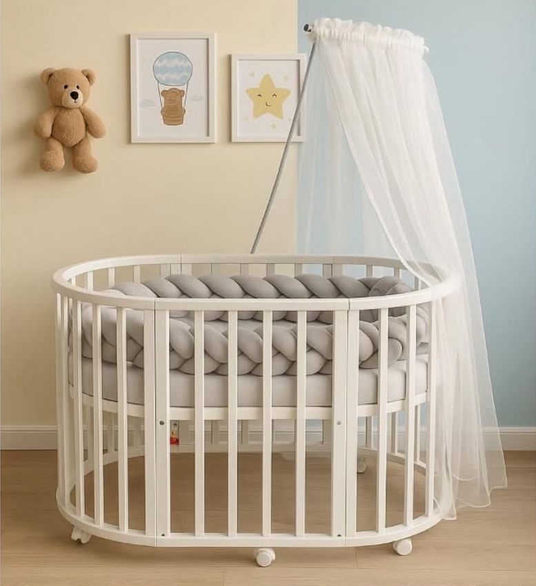✅ Vjen komplet si në foto – me mbrojtëset anësore, mbulesën me tyl dekorativ dhe dysheki.