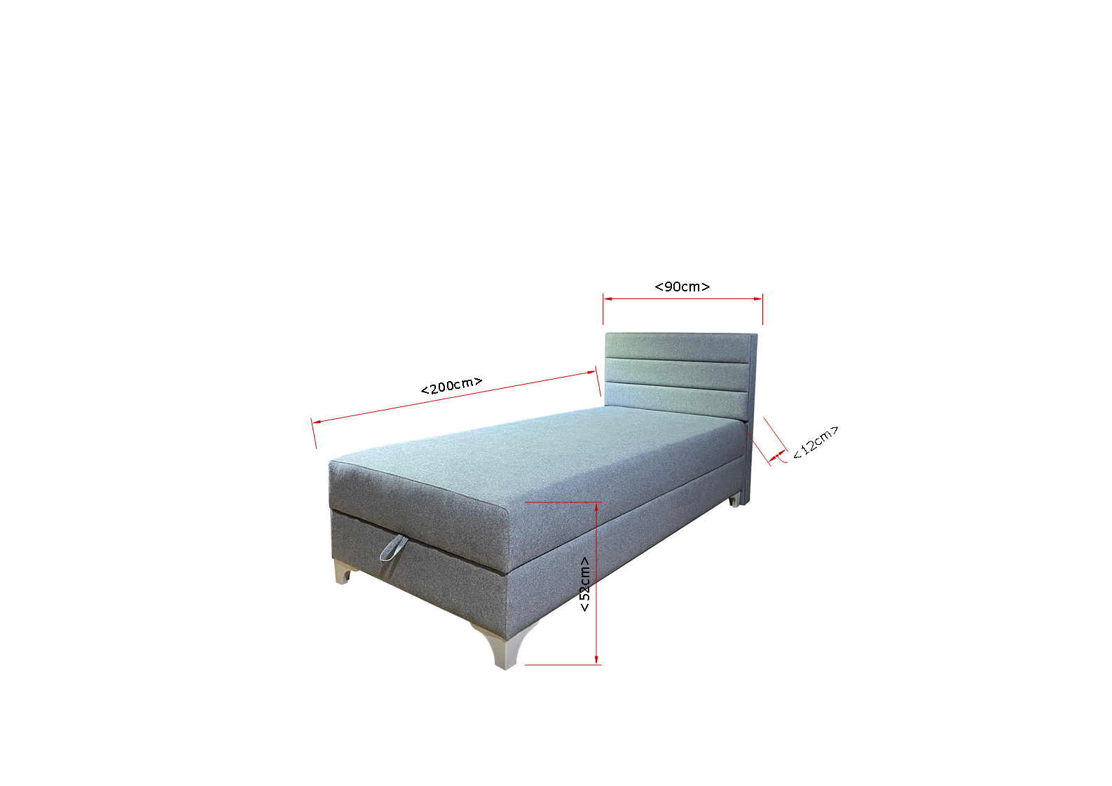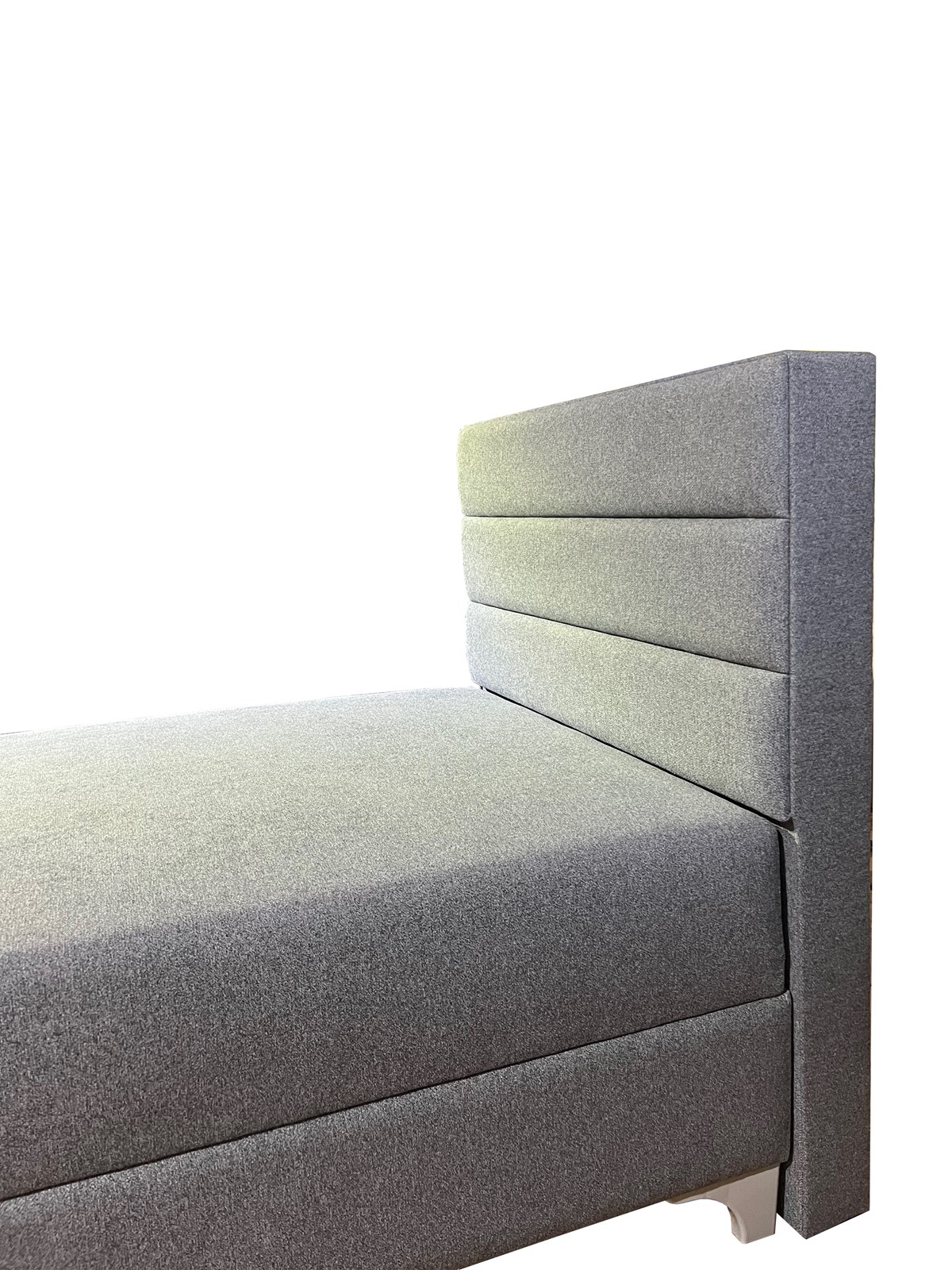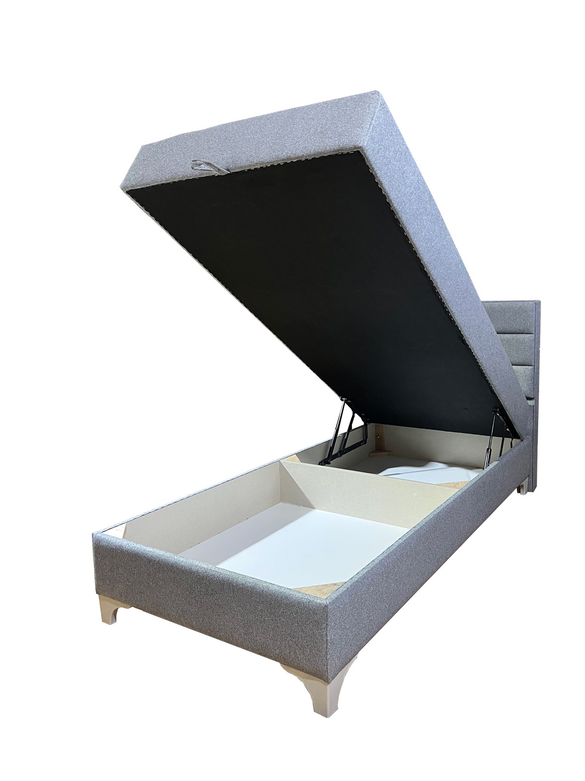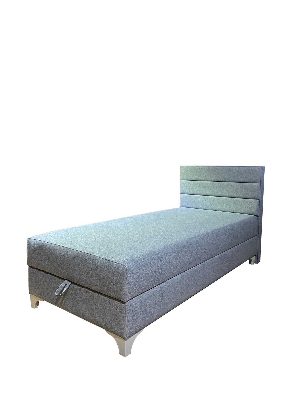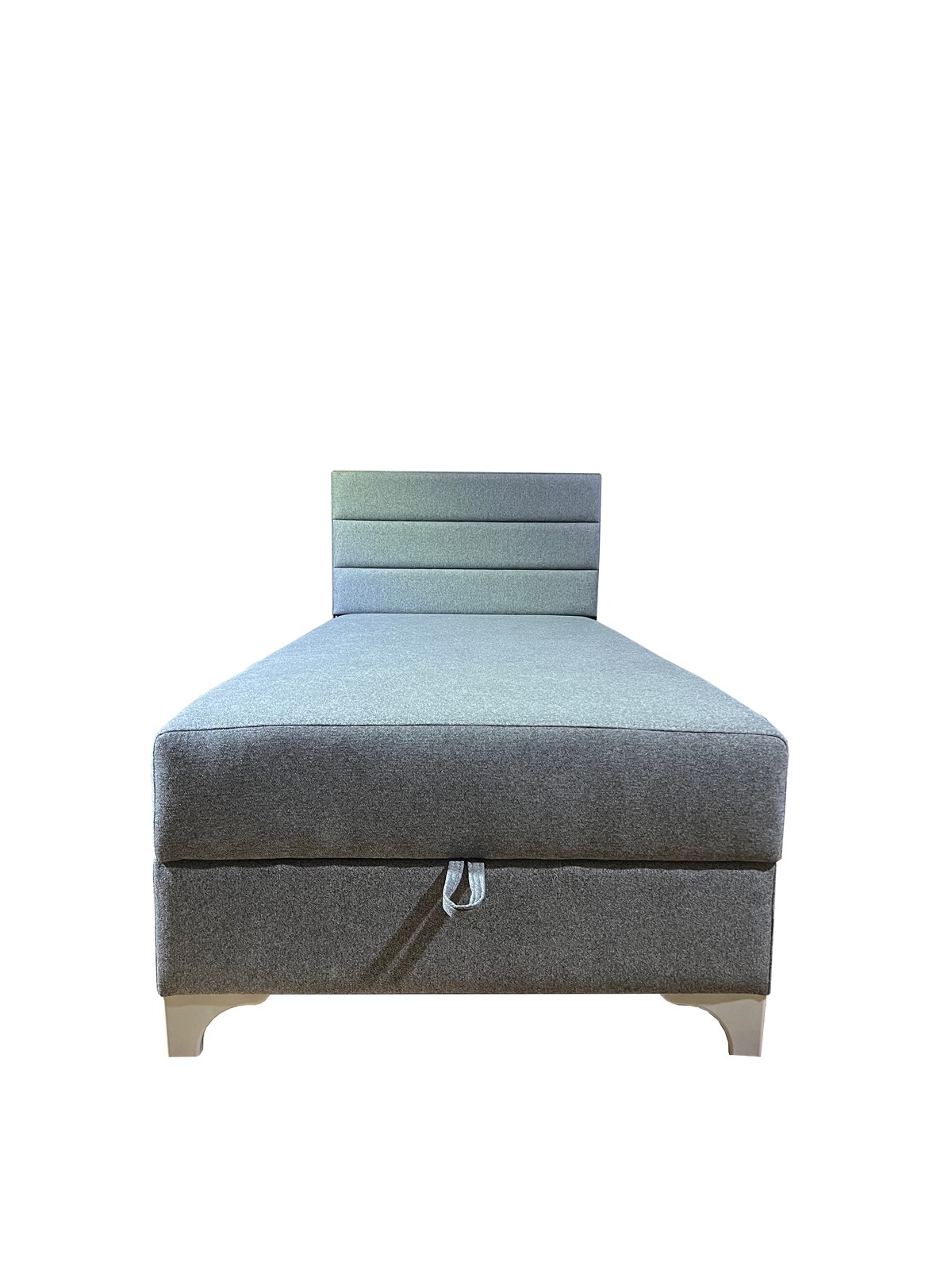 Ky shtrat modern njëpersonësh kombinon dizajnin praktik me komoditetin maksimal. I veshur me material cilësor stofi në ngjyrë gri elegante, ai përshtatet lehtësisht me çdo stil arredimi.