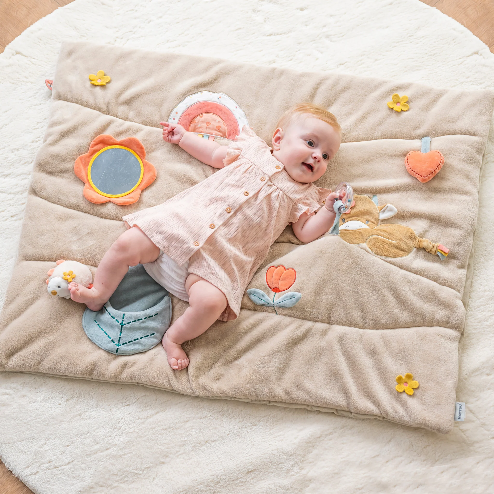 Shtroja e butë me lodra Mila, Lana dhe Zoe në madhësinë 80x100 cm dhe ngjyrë bezhë është një hapësirë loje e përshtatshme dhe stimuluese për foshnjat. E bërë nga materiale të buta dhe të sigurta, kjo shtroje përfshin lodra të varura që nxisin zhvillimin ndijor dhe motorik të fëmijëve. Sipërfaqja e saj e rehatshme është ideale për lojëra ose pushim, ndërsa harku me lodra tërheq vëmendjen dhe inkurajon eksplorimin. E lehtë për t’u pastruar dhe ruajtur, kjo shtroje është ideale për foshnjat e moshës 0 . Ngjyra bezhë shton një prekje neutrale dhe elegante.