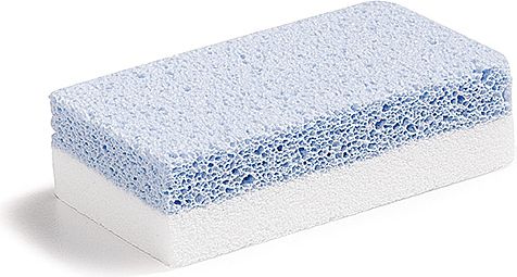 Shtuf blu dhe i bardhë për manikyr dhe pedikyr. Ana e bardhë: kokërr e imët për të lëmuar duart dhe pjesët delikate. Ana blu: kokërr e trashë për të hequr shpejt kallot dhe lëkurën e vdekur nga këmbët.