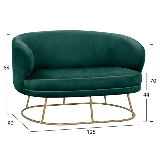 Sofa Arien 2-ulëse velur gjelbër (HM8492.03), gjelbër/ ari