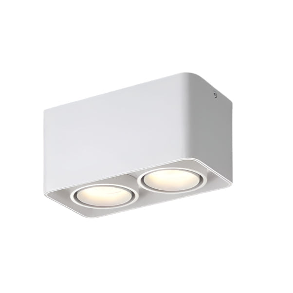 Spot tavanor për ambientet e jashtme, me dy mbajtëse GU10, i ndërtuar nga alumin i fortë dhe i rezistueshëm ndaj kushteve atmosferike. Dizajn modern në ngjyrë të bardhë, ideal për ndriçim në hyrje, ballkone, nën streha dhe ambiente të jashtme të mbrojtura.