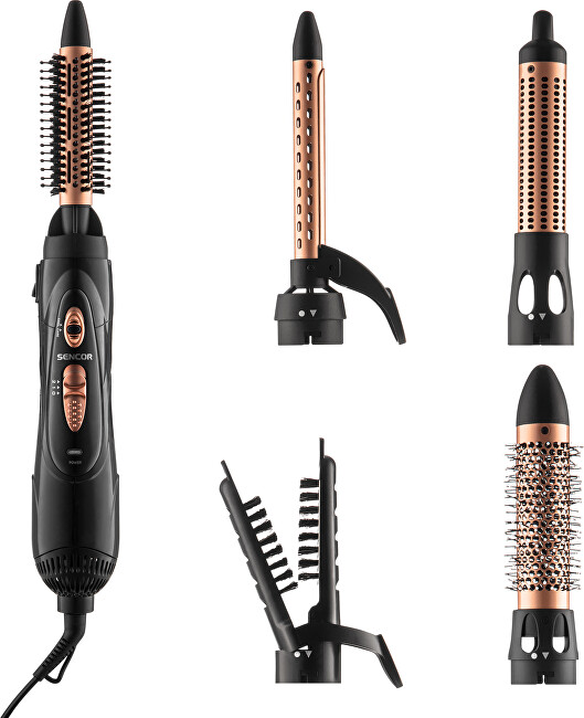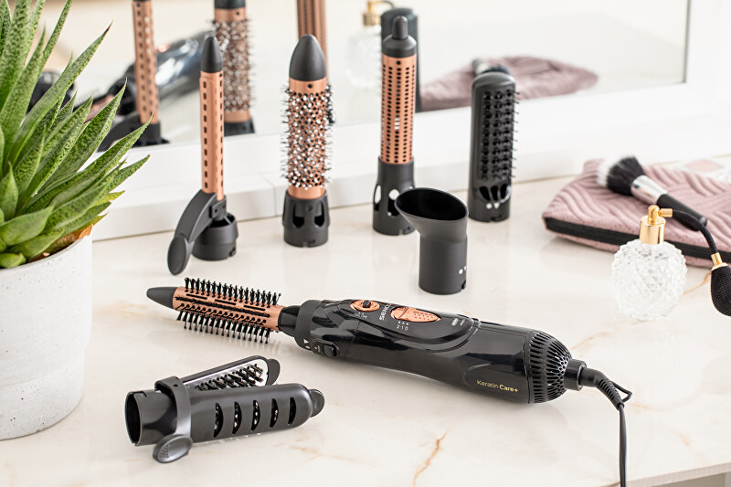 Ju mund të krijoni një model flokësh sikurse në një sallon ondulimi në komoditetin e shtëpisë tuaj. Stiluesi me ajër të nxehtë për kaçurrela ofron 7 shtesa për shumë variacione flokësh. Ai ka 2 cilësime të temperaturvs, funksion jonizues me efekt antistatik dhe butonin e ajrit të ftohtë. Vjen me 7 shtesa: përqëndrues, shtesa për kaçurrela (diametri 18 mm, gjatësia e punës 115 mm), furçë e rrumbullakët (diametri 20 mm, gjatësia e punës 95 mm), gjysmë furçë (gjerësia 39 mm, gjatësia e punës 90 mm), furçë e rrumbullakët me kunja të tërheqshme (diametri 28 mm, gjatësia e punës 100 mm), furçë e madhe e rrumbullakët (diametri 31 mm, gjatësia e punës 110 mm), furçë drejtimi (gjerësia 38 mm, gjatësia e punës 90 mm).