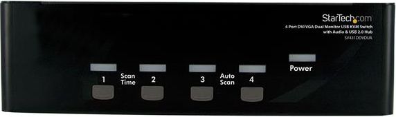 Switch-i KVM përmban katër porta DVI-I / VGA / USB / 3.5mm Mini-Jack për lidhjen e kompjuterëve. Switch-i mbështet një rezolucion maksimal analog prej 1920 x 1440 dhe një rezolucion dixhital prej 1920 x 1200.