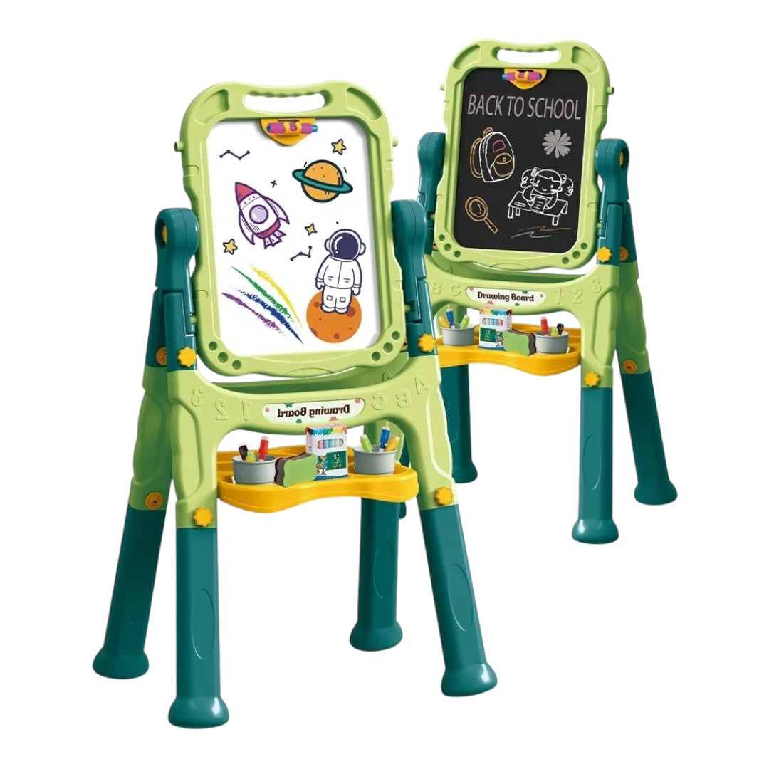 Kjo tabelë multifunksionale për fëmijë është shoqëruesi ideal për të nxitur kreativitetin dhe zhvillimin artistik. E projektuar për pikturë, vizatim dhe lojëra me imagjinatë, ajo përshtatet në mënyrë të përsosur me nevojat e vogëlushëve që nga mosha 3 vjeç e lart.