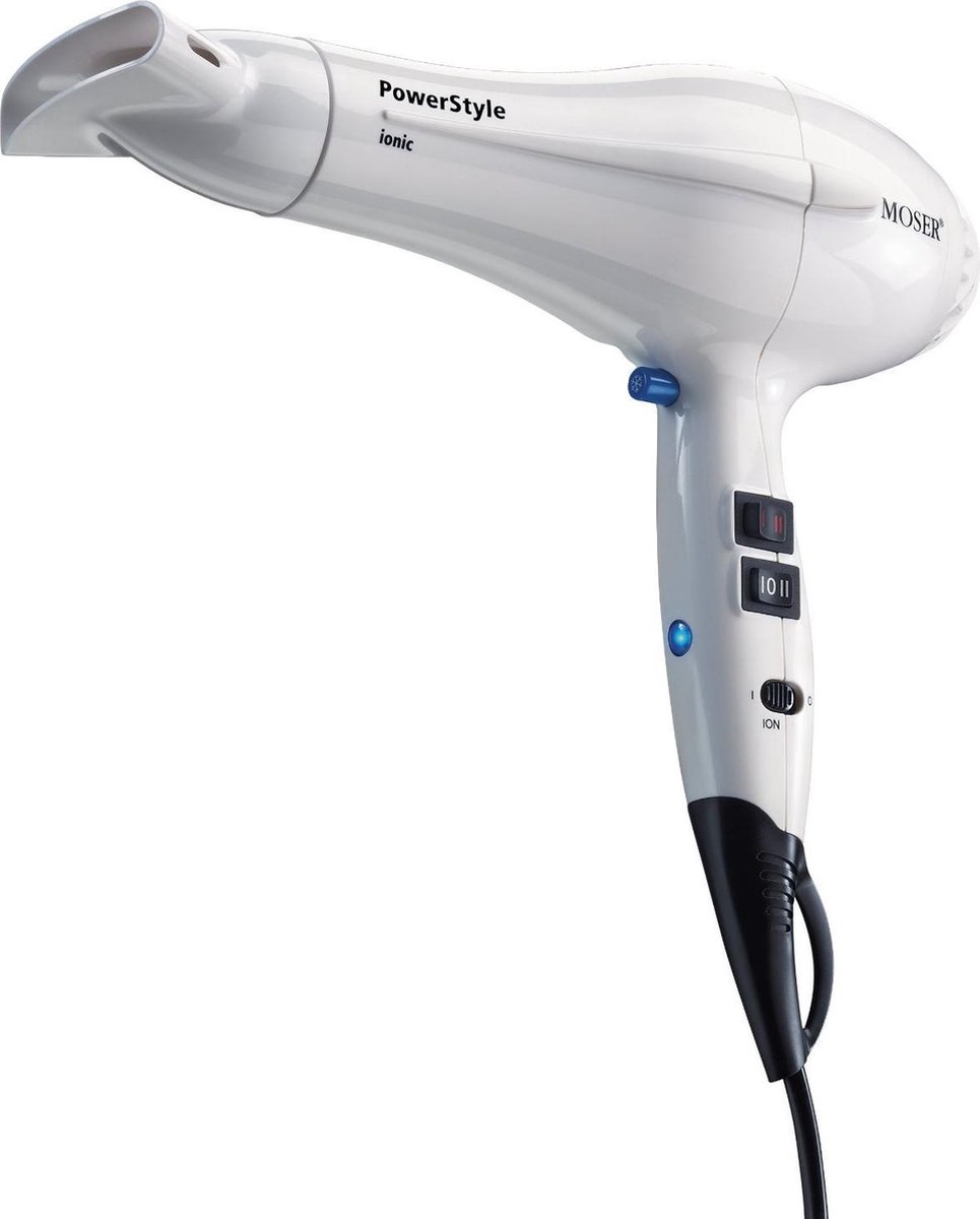 Tharëse flokësh profesionale Moser ProfiLine PowerStyle Ionic White me funksion anti-statik të zgjedhshëm, e butë për flokët. Fuqia 2000 W me motor AC të qëndrueshëm. 2 shpejtësi dhe 3 nivele temperature. Buton ftohjeje të menjëhershme. Një dysë për fokusim. Peshë 580 gr, kabllo 3 m. Përfshin broshurë dhe manual përdorimi.