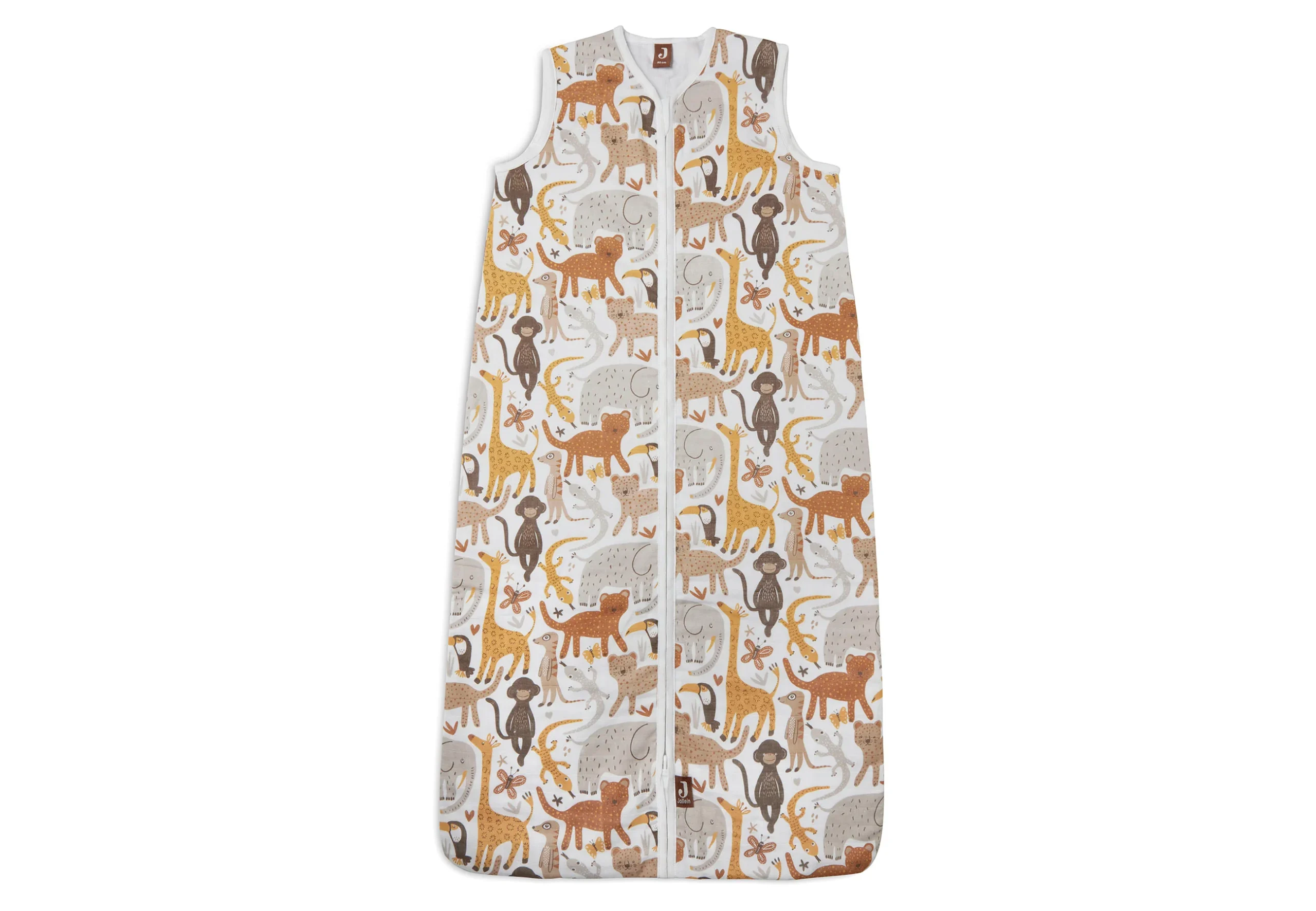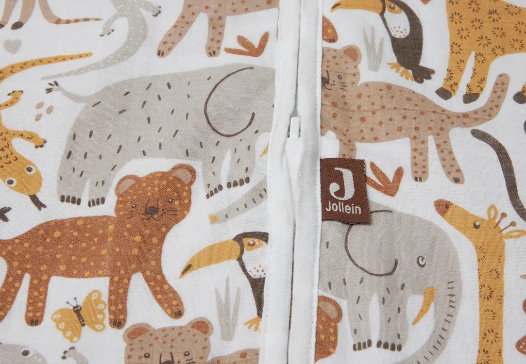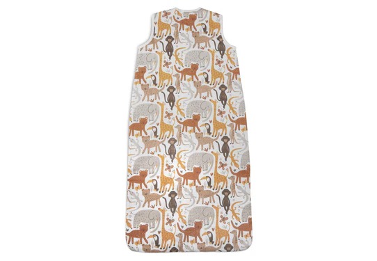 Thesi i gjumit Jungle me gjatësi 70 cm është krijuar për të siguruar një gjumë të qetë dhe të sigurt për foshnjat nga 0 deri në 6 muaj. I bërë nga pambuku i butë dhe i ajrosshëm, ky thes ofron rehati dhe mbrojtje për lëkurën e ndjeshme të foshnjës. Dizajni me motive xhungle në ngjyra të gjalla si jeshile dhe e verdhë i shton një pamje lozonjare dhe tërheqëse. Zinxhiri i sigurt lehtëson veshjen dhe heqjen e thesit. Thesi lahet në makinë, duke ruajtur cilësinë dhe butësinë pas larjeve të përsëritura. Ky produkt është perfekt për prindërit që duan një zgjidhje të sigurt dhe estetike për gjumin e foshnjës.