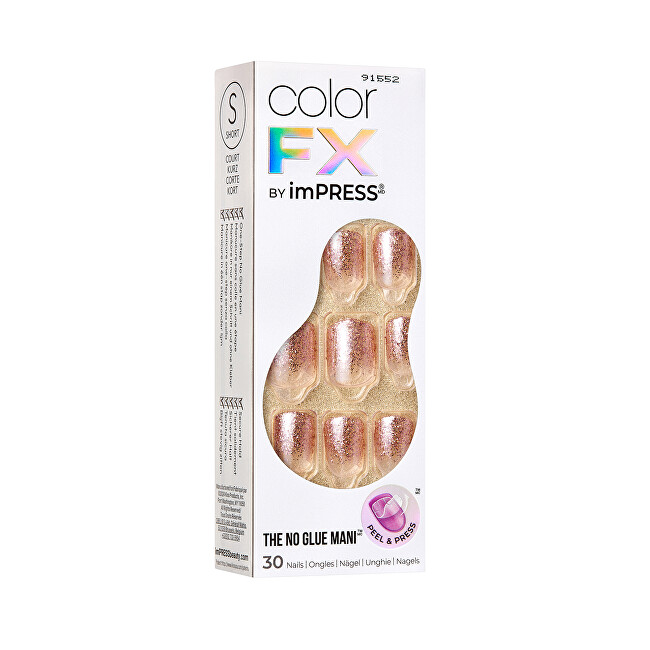 Thonjtë artificialë vetëngjitës ImPRESS Color FX – Dimension, vijnë në set me 30 copë, të krijuar me teknologji unike të ngjyrës që imiton teknikat profesionale të salloneve duke ofruar një efekt dhe nuancë që nuk arrihet me manikyr tradicional. Këta thonj nuk shkëputen, nuk njollosen dhe janë të butë si thonjtë natyralë, duke siguruar një aplikim të lehtë dhe heqje të shpejtë. Produkti është vegan, pa testim mbi kafshët dhe me paketim të qëndrueshëm, duke kombinuar estetikën me kujdesin për mjedisin.