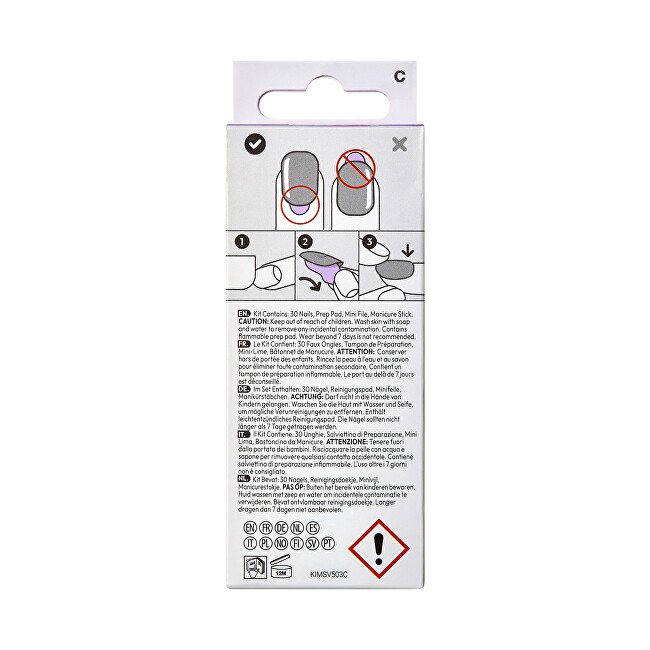 Thonjtë vetëngjitës nga Kiss kanë dizajnin e manikyrit francez klasik dhe elegant. Janë të pajisur me teknologjinë e injeksionit të dyfishtë/të kundërt, teknologjia më e fundit "Pure-Fit". Kanë paketim të qëndrueshëm dhe ngjitës të patentuar Super Hold që është i sigurtë për thonjtë natyralë.