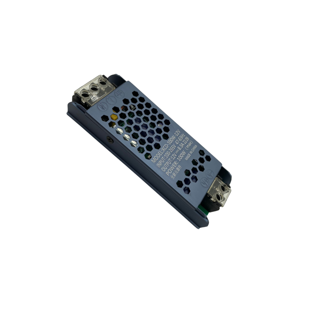 Transformator LED me dalje 12 V DC dhe rrymë maksimale 12.5 A, me fuqi 150 W. I destinuar për përdorim të brendshëm, me mbrojtje IP20 dhe efikasitet rreth 70–80%. Përdoret zakonisht për shirita LED, kamera sigurie dhe sisteme ndriçimi.