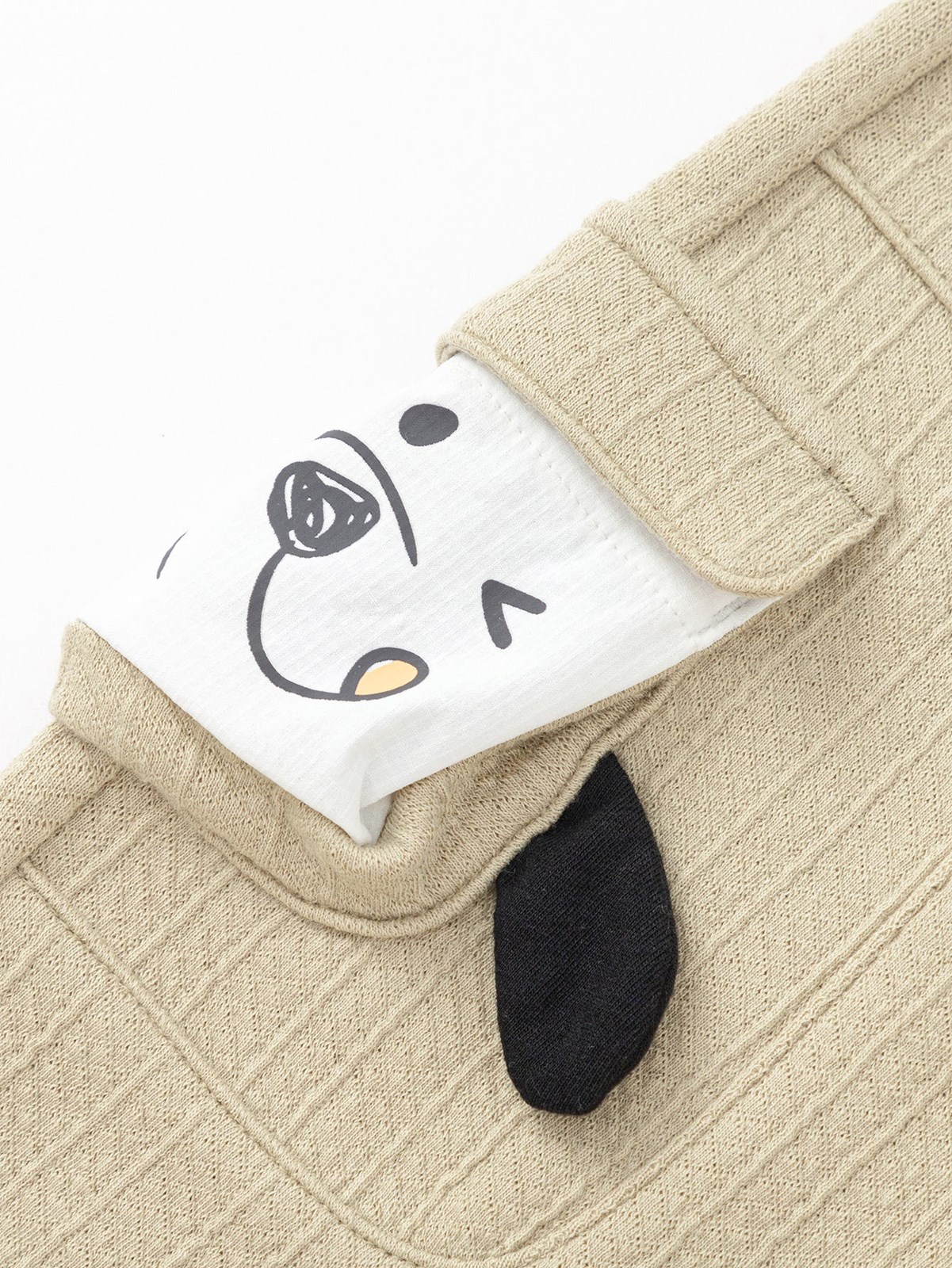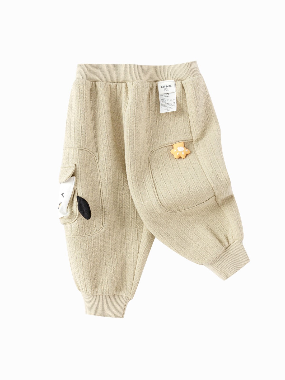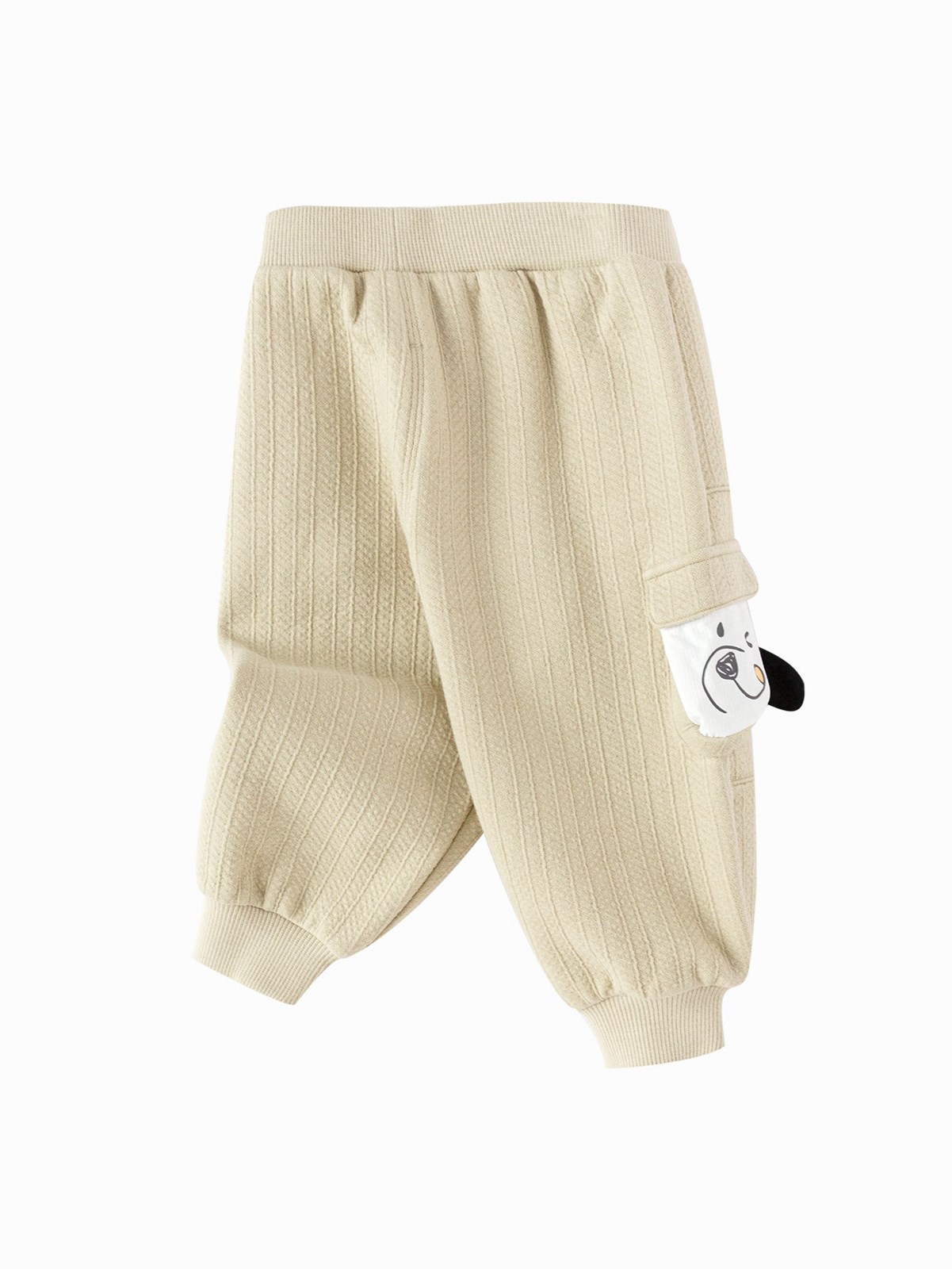 These pants dont just walk they waddle with charm! With playful bear and panda friends peeking from the pockets, your little ones day just got a whole lot cozier and cuter. Ribbed cotton knit for breathable stretch and softness 3D bear ears embroidered faces on side cargo pockets Comfy elastic waistband for easy changes Functional pockets treasure storage ready Snuggle meets adventure in every step. Made for naps, zoomies, and everything in between.