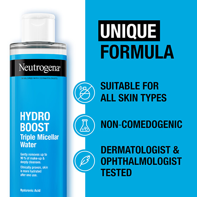 Formula unike e zhvilluar në bashkëpunim me dermatologë është e pasuruar me acid hialuronik dhe tre lloje molekulash micelare që punojnë së bashku për të siguruar efikasitet dhe butësi ndaj lëkurës, duke hequr grimcat pa fërkim, ndihmuar në eliminimin e papastërtive dhe yndyrës së tepërt, si dhe duke përmirësuar hidratimin e lëkurës për 24 orë. Brenda një jave, 94% e përdoruesve konfirmuan ndjesinë e pastrimit të thellë pas përdorimi. Formula është pa alkool, pa sulfate, e testuar nga dermatologë dhe okulistë, jo komedogjene dhe nuk mbyll poret, gjithashtu është e përshtatshme për lëkurë të ndjeshme. Aplikohet në fytyrë dhe sy me një pambuk, pa pastrim me ujë.