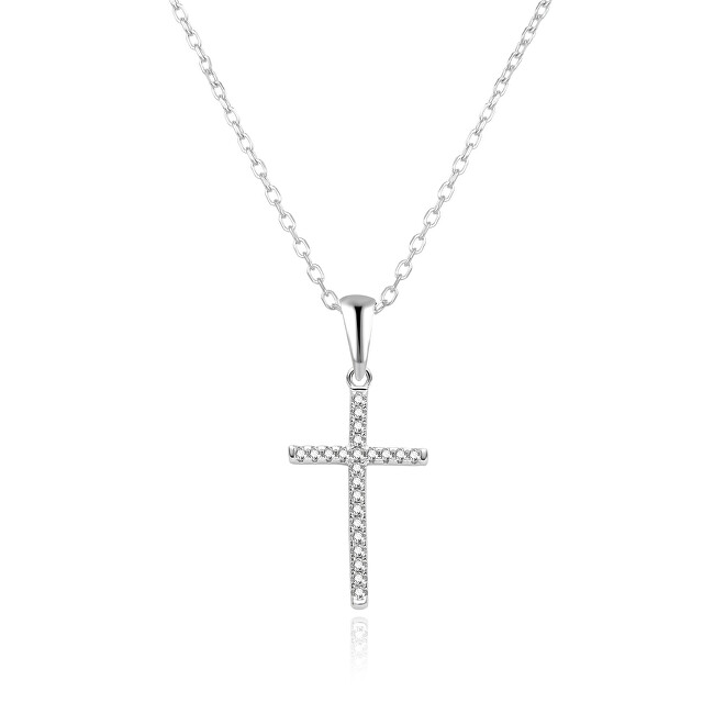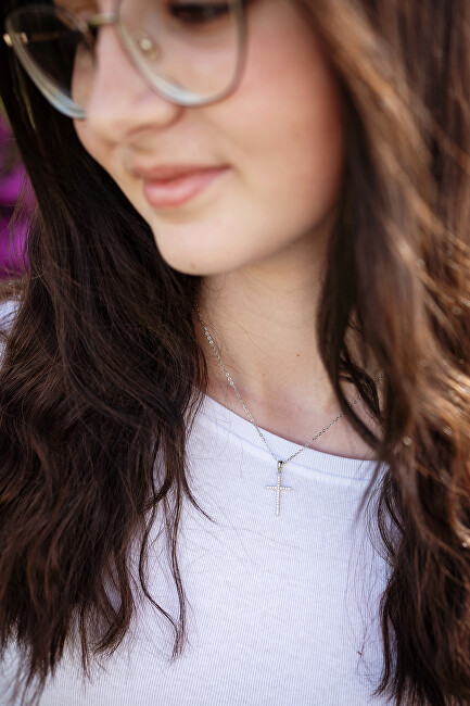 Një varëse e njohur dhe elegante nga brandi Agato, e punuar nga argjend cilësor 925/1000 dhe e veshur me rhodium, që redukton ndjeshmërinë alergjike dhe ruan shkëlqimin e saj. Varësja ka një kryq të zbukuruar me zircone të prerë saktësisht, të cilat shkëlqejnë dhe tërheqin vëmendjen që në shikim të parë. Gjatësia e zinxhirit: 42 cm, me mundësi zgjatjeje deri në 5 cm. Madhësia e varëses: 1.2 x 2.6 cm. Një aksesor ideal për stil të rafinuar, besim dhe elegancë në çdo veshje.
