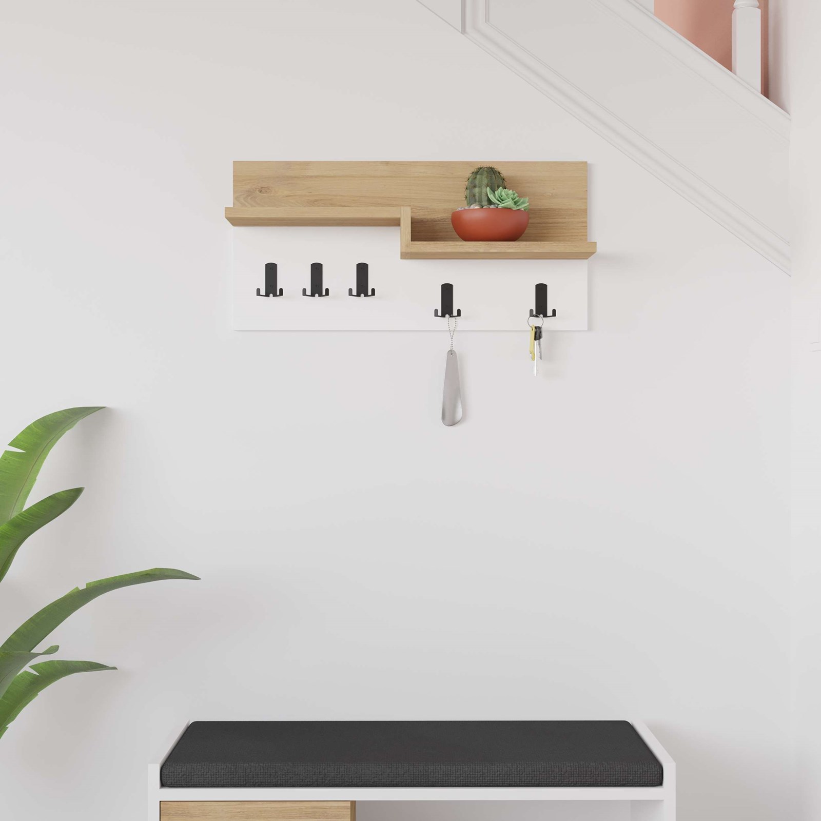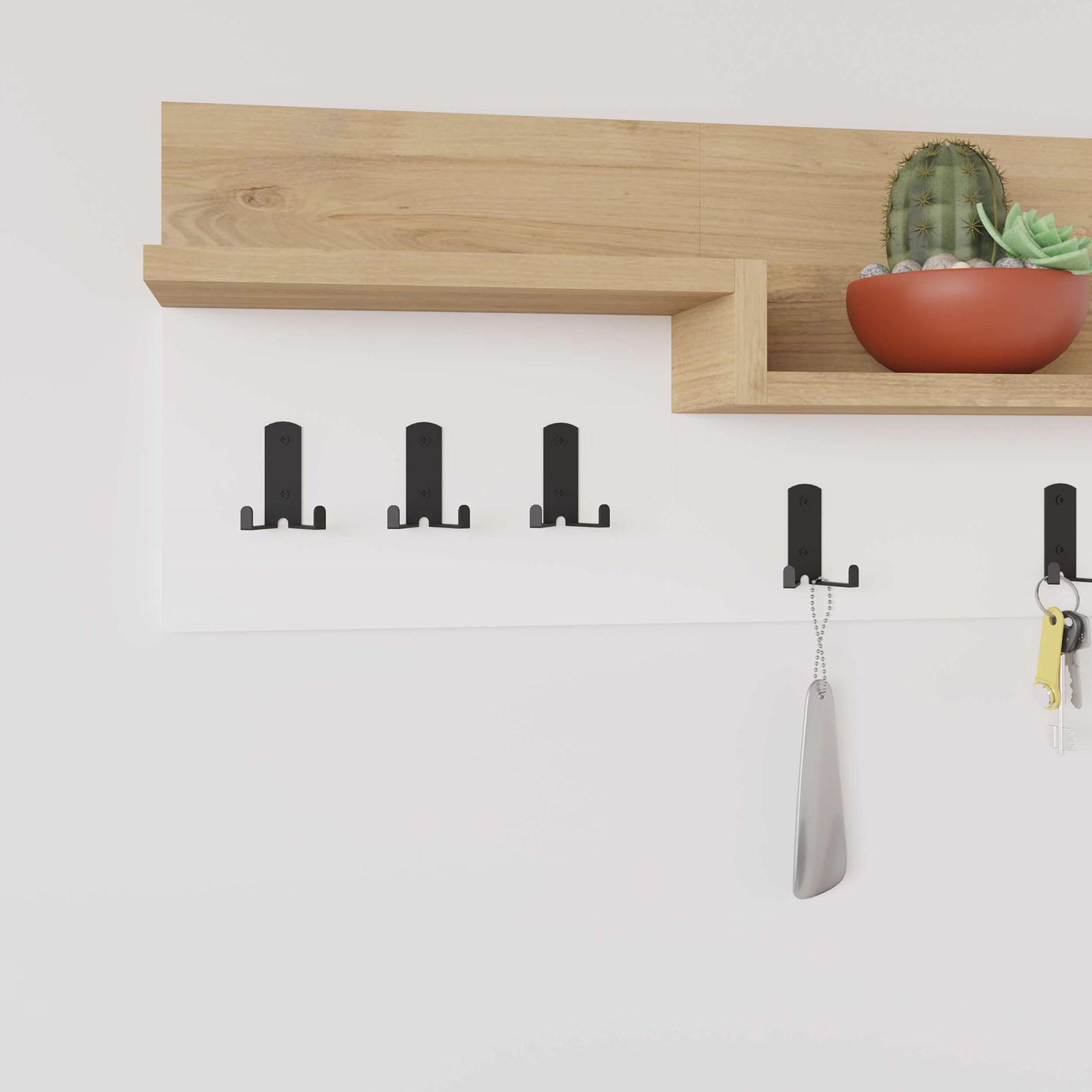 Dizajn modern dhe praktik për organizimin e hapësirës! Hanger Harmon kombinon elegancën e drurit me funksionalitetin e kllapave të zeza, duke krijuar një zgjidhje ideale për çelësa, çanta dhe xhaketa.