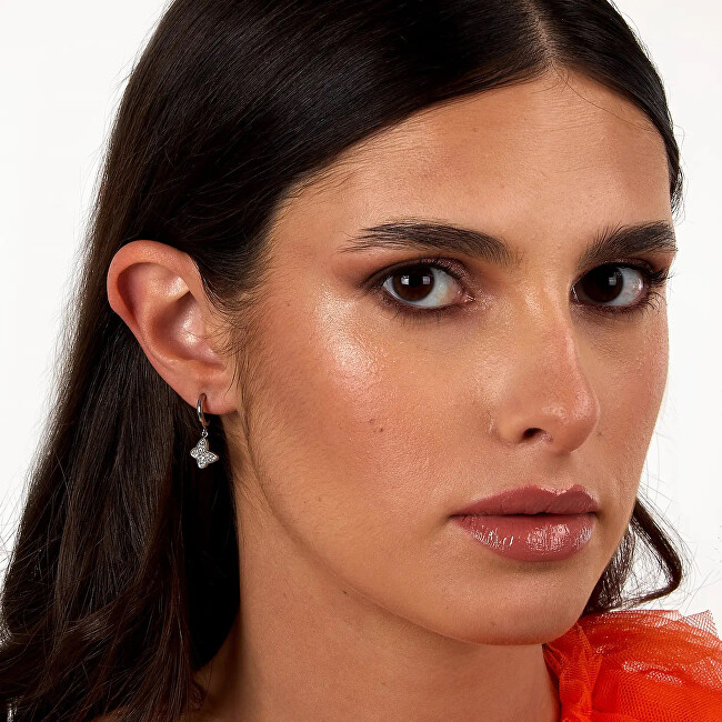 Vathi elegant për femra nga La Petite Story është punuar nga çeliku. Ky është vetëm një vath, për të cilin mund të zgjidhni një tjetër sipas shijes tuaj nga oferta jonë. Ka formën e një gjysmërrethi me një varëse në formë fluture të dekoruar me kristale vezulluese.