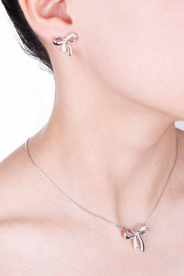Të bukur dhe elegant janë vathët dedikuar femrave nga Moiss të cilët janë me fjongo të dekoruar me kristale të pastra. Aksesorët janë me ngjyrë argjendi dhe të gjelbër me sipërfaqe me shkëlqim dhe të praruar në rodium. Vathët janë punuar nga zirkoni dhe argjendi 925/1000, si dhe janë të gjatë 1.6 cm.