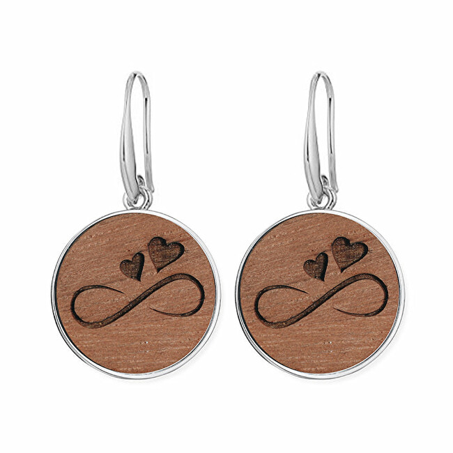Vathët simpatikë të varur nga marka CRYSTalp janë punuar nga çeliku i cilësisë së lartë dhe arra austriake. Dekorohen me një gdhendje të simbolit të pafundësisë dhe zemra të vogla. Diametri i stolisë: 1.7 cm.