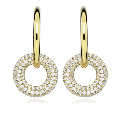Vathët elegantë nga marka Silver Cat janë punuar nga argjendi i cilësisë së lartë 925/1000 i veshur me ar të verdhë 14 karat. Dekorohen me gurë vezullues prej zirkoni. Madhësia e vathit: 1.3 x 2.4 cm.