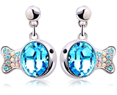 Vathë Vicca® bërë nga rubidiumi, në formën e peshqve zbukuruar me zirkone shumëngjyrëshe dhe kristal të kaltër që i jep pamjen glamuroze vathëve. Mos e humbni shansin të dukeni unike sa herë mbani këta vathë.